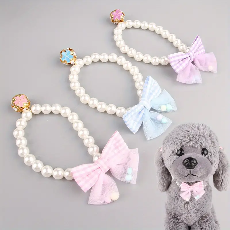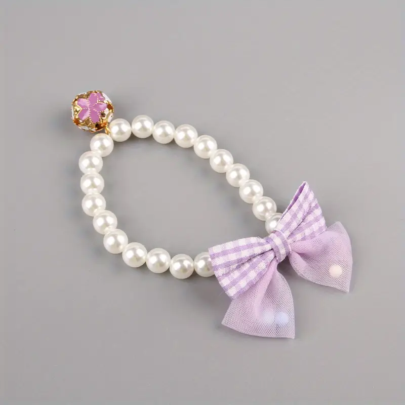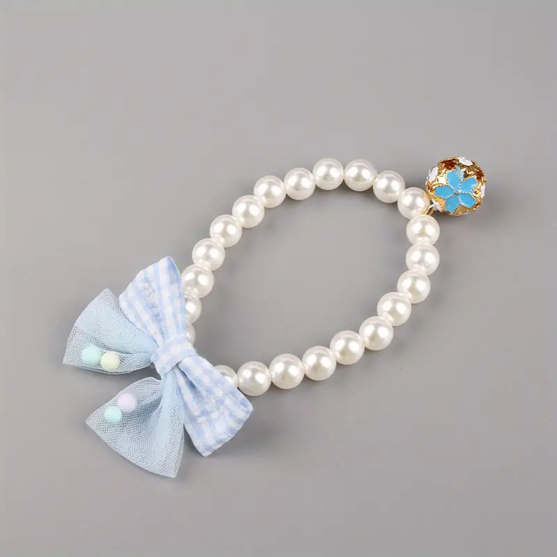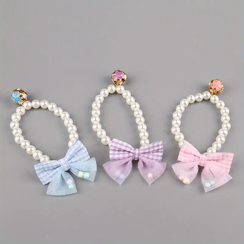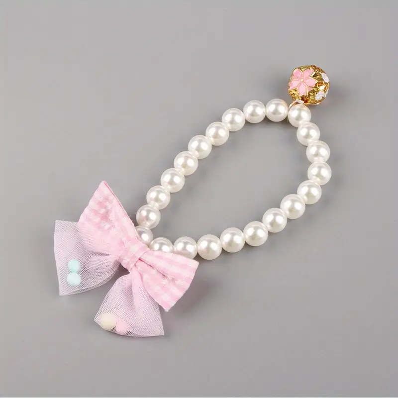 Küçük ve Orta Boy Kediler İçin Şık İnci & Fiyonk Esnek Evcil Hayvan Tasması