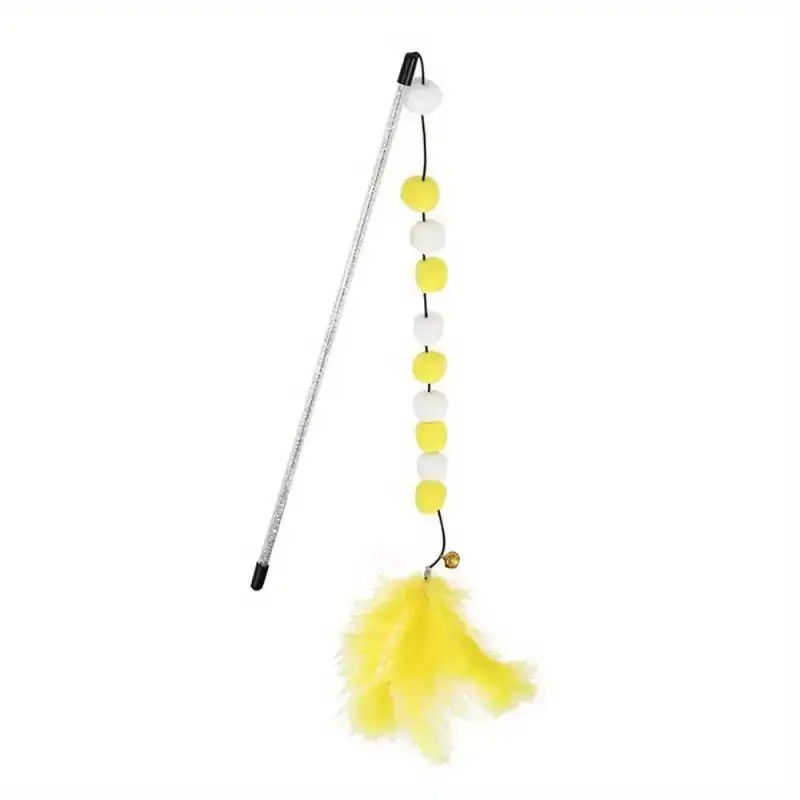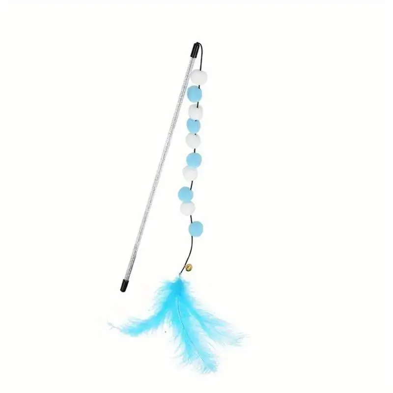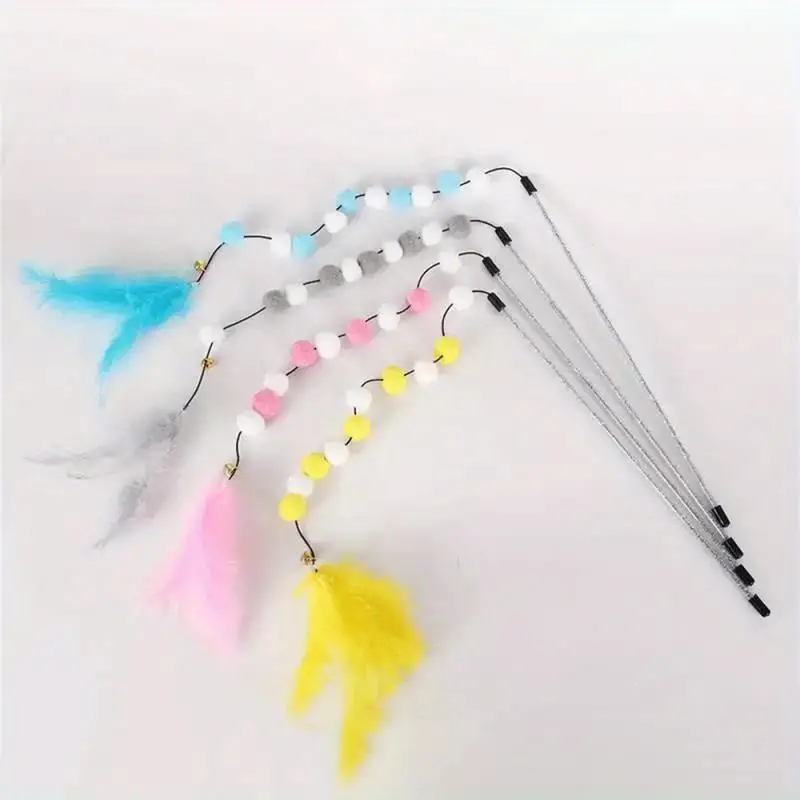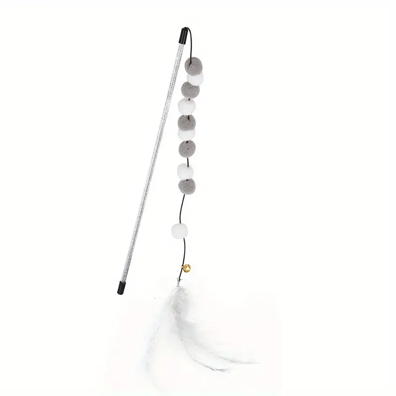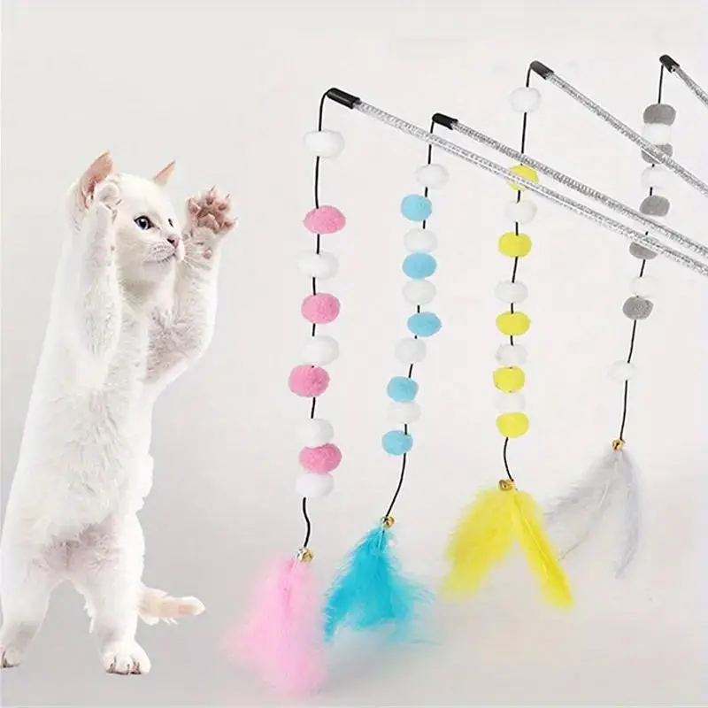 1 adet Pompom Kedi Oyuncak, Etkileşimli Çubuk Tüy Oyuncakları, Kedi Kışkırtma Peluş Top Çubuk, Kedi Egzersiz Oyuncak